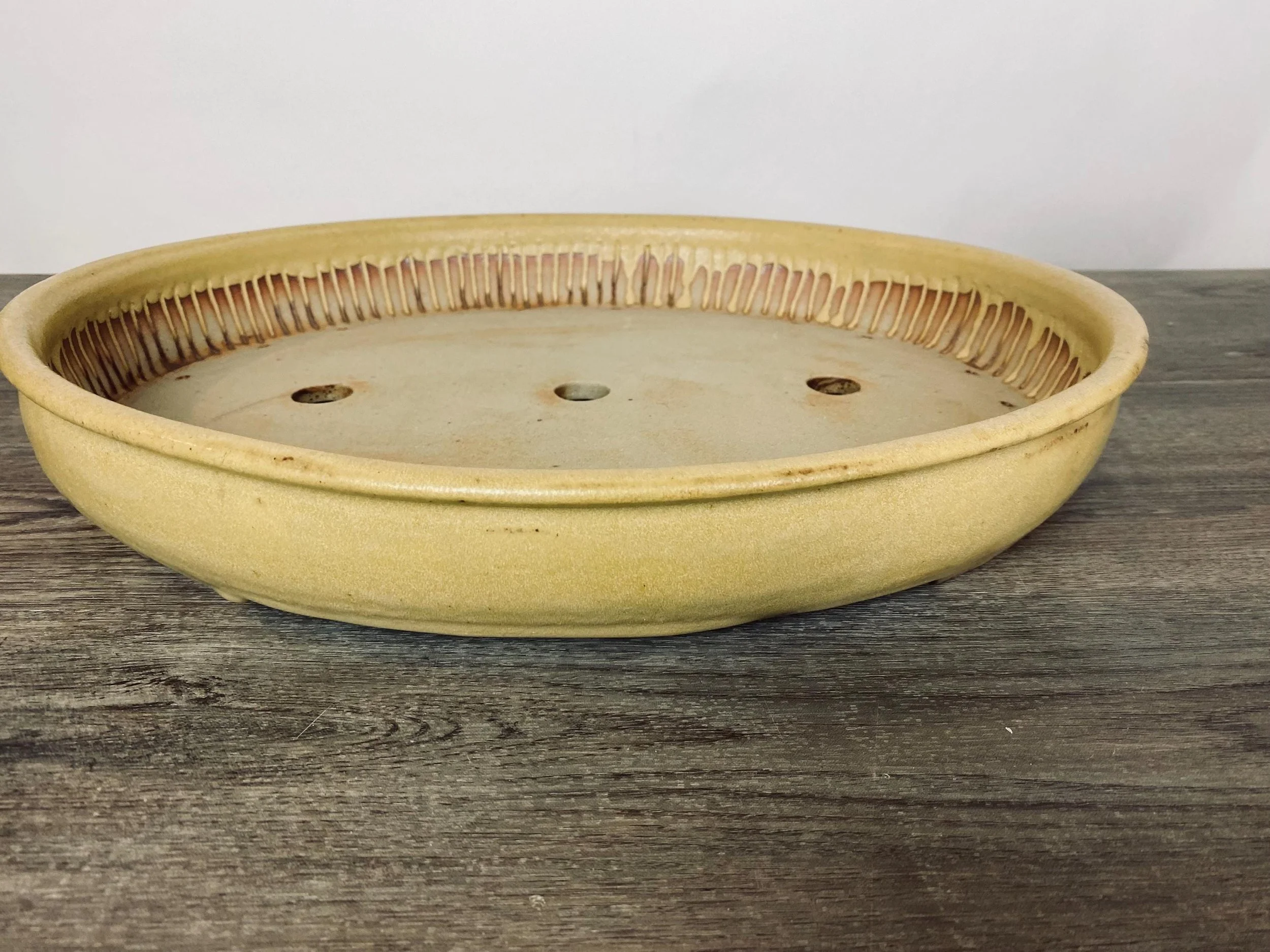 All of the bonsai pots are made from clay and fired to cone 10 to be fully vitrified. This high fire makes them frost resistant and strong.