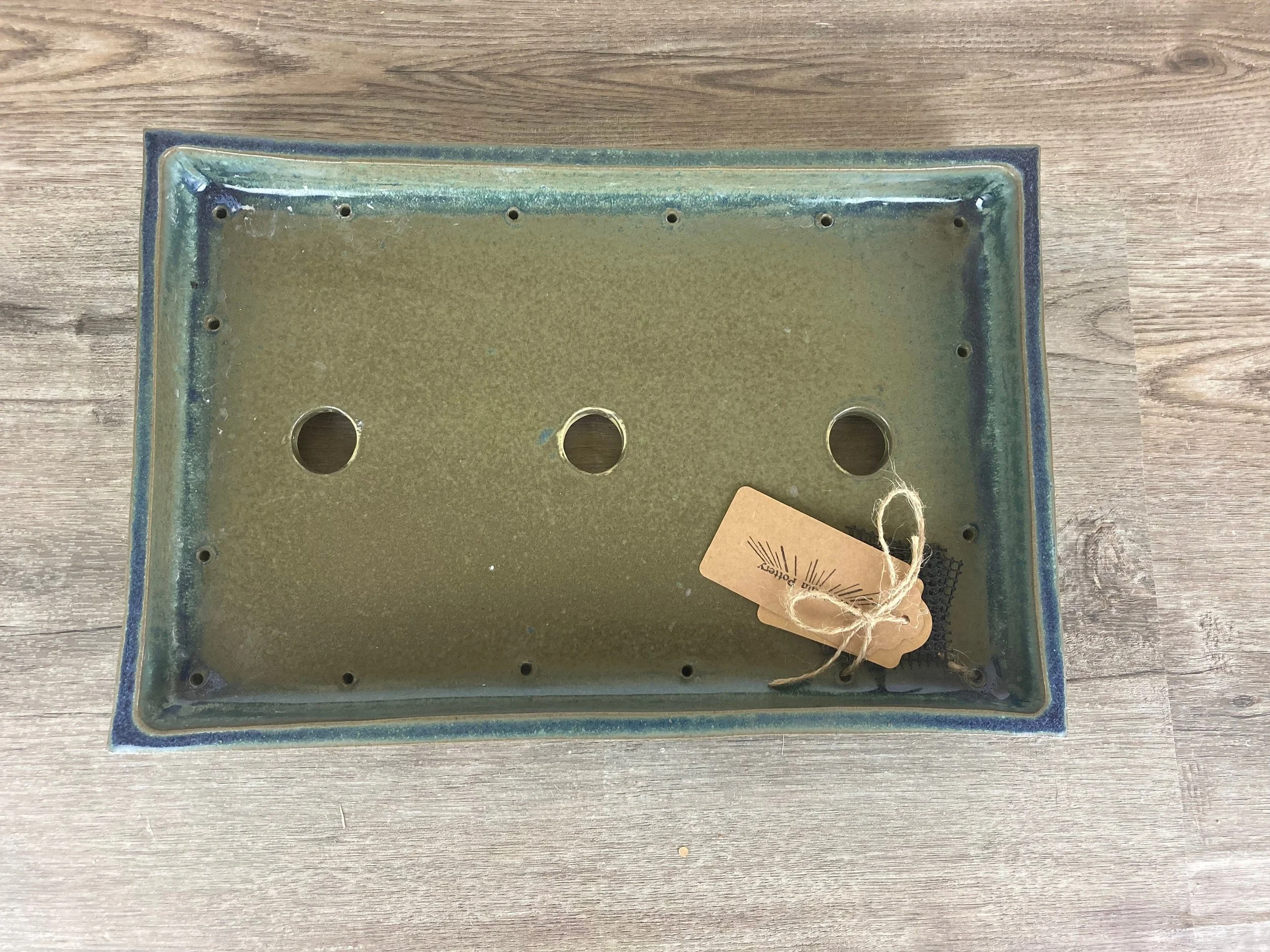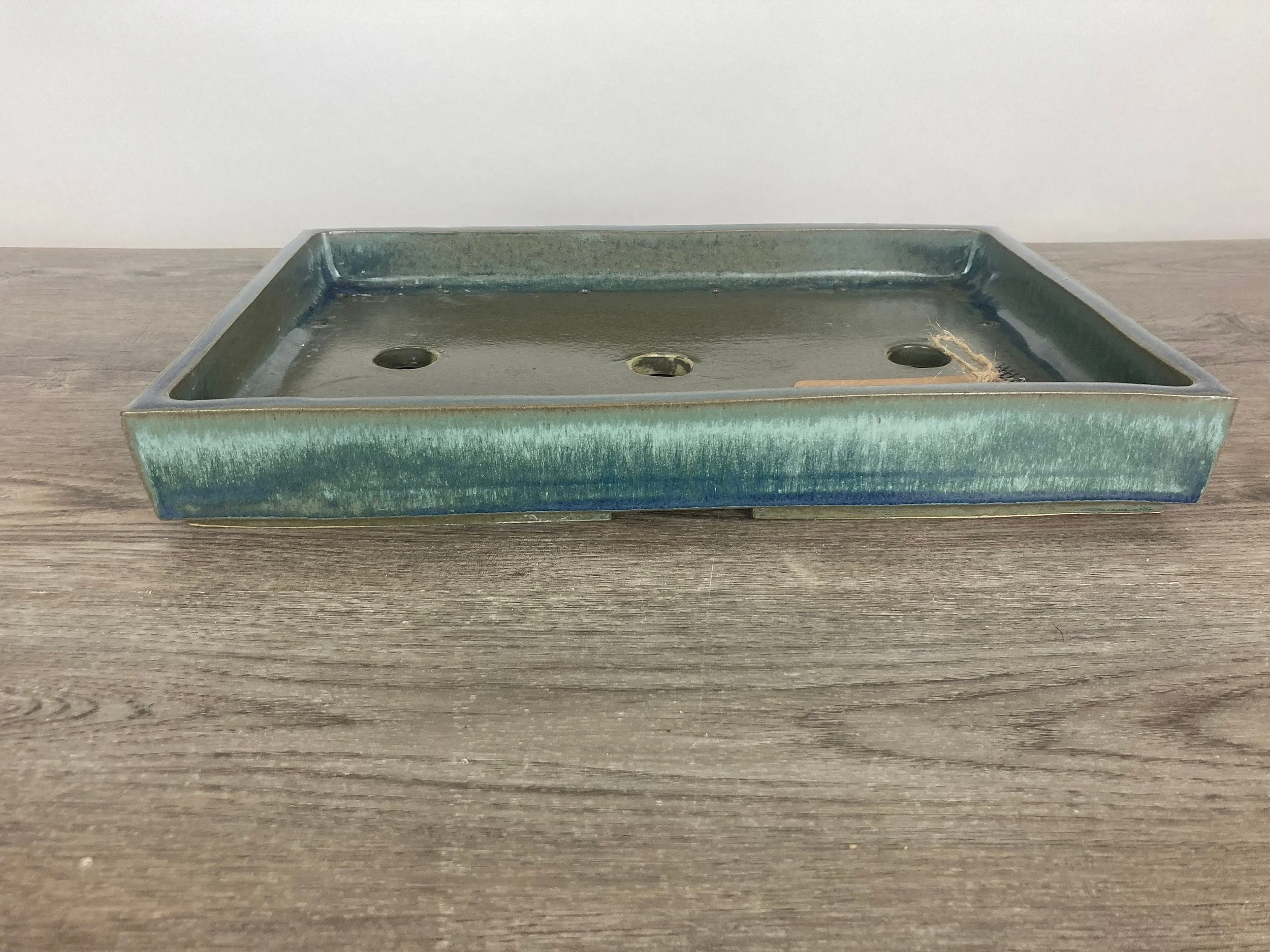 This rectangle pot has a variegated blue glaze.