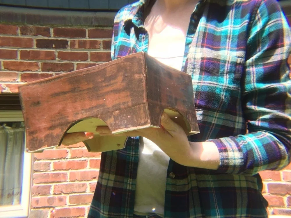 This is a plain designed large rectangle pot. The walls of the pot are warped and curve inward slightly.It has a speckled semigloss glaze with a rusty look to it. Very interesting glaze to see up close. The wide feet on this pot help portray a feeling of stability and it would look great with a pine tree in it. This Medium sized rectangle bonsai pot has three drain holes and six small holes to tie down your bonsai. This pot has been made by hand, so expect character, not perfection. Pot is 9" long, 7" wide and 5" tall. It has been high fired to be frost resistant, so it is good for outdoor use in cold climates.
