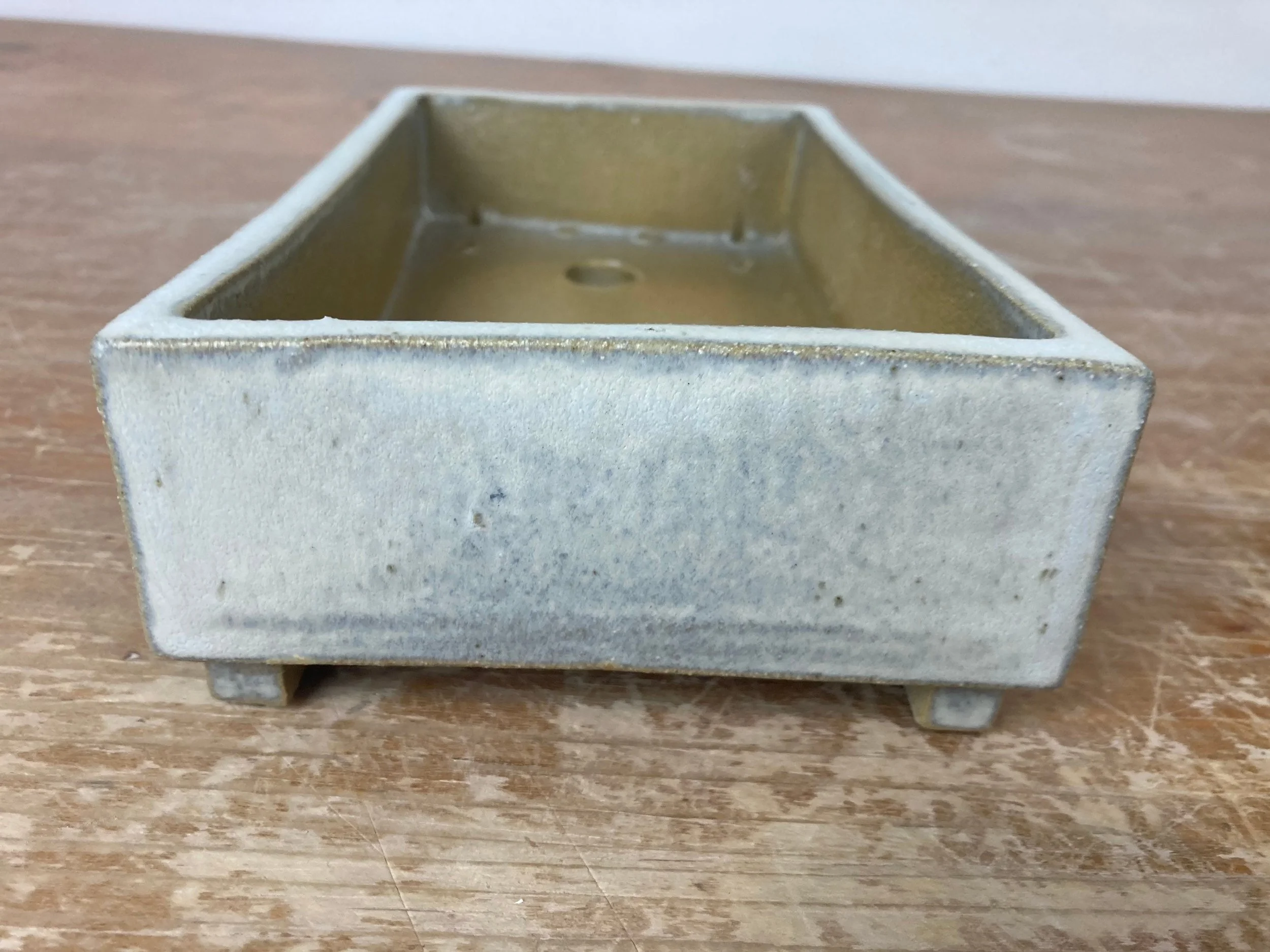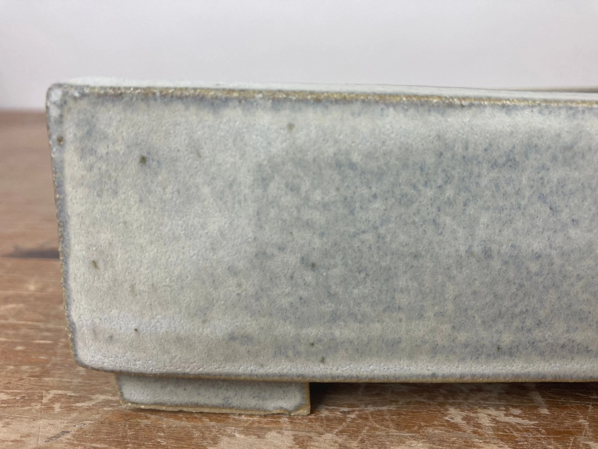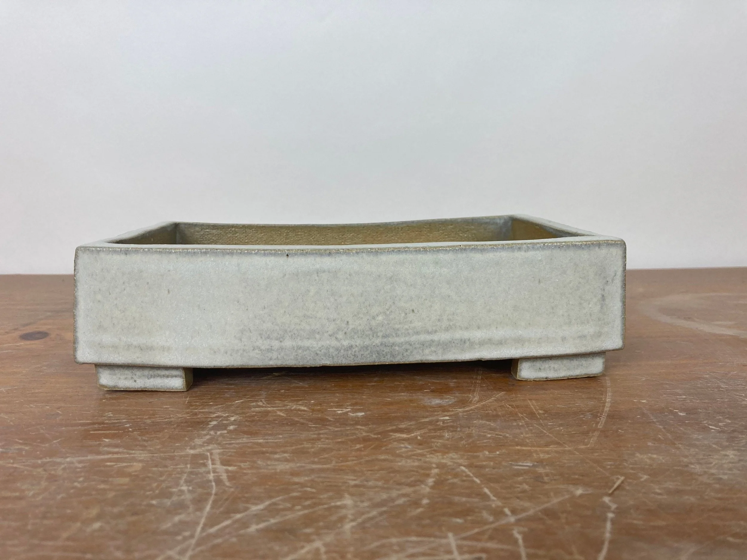 This pale white rectangular pot can be used for a small bonsai, kusamono or shitakusa or whatever you would like to plant in it. This little pot was high fired making it frost resistant and durable. It is 7.5 inches long, 4.75 inches wide and 2 inches tall on the outside. The planting area is 6.75 inches long, 4 inches wide, and 1.5 inches deep.