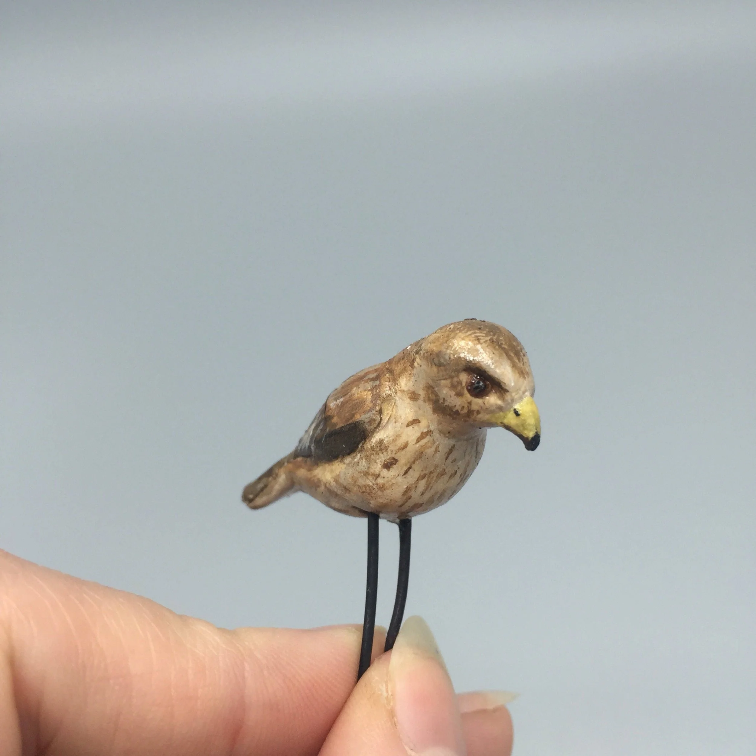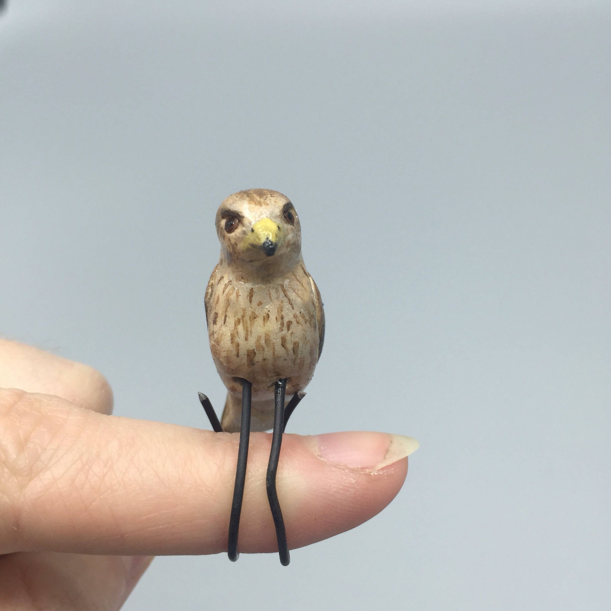 Small hawk sculpture for bonsai tree or fairy garden. Bonsai wire is used to make bendable legs to wrap around a tree branch or they can be straightened and pushed into the soil to hold the bird up.